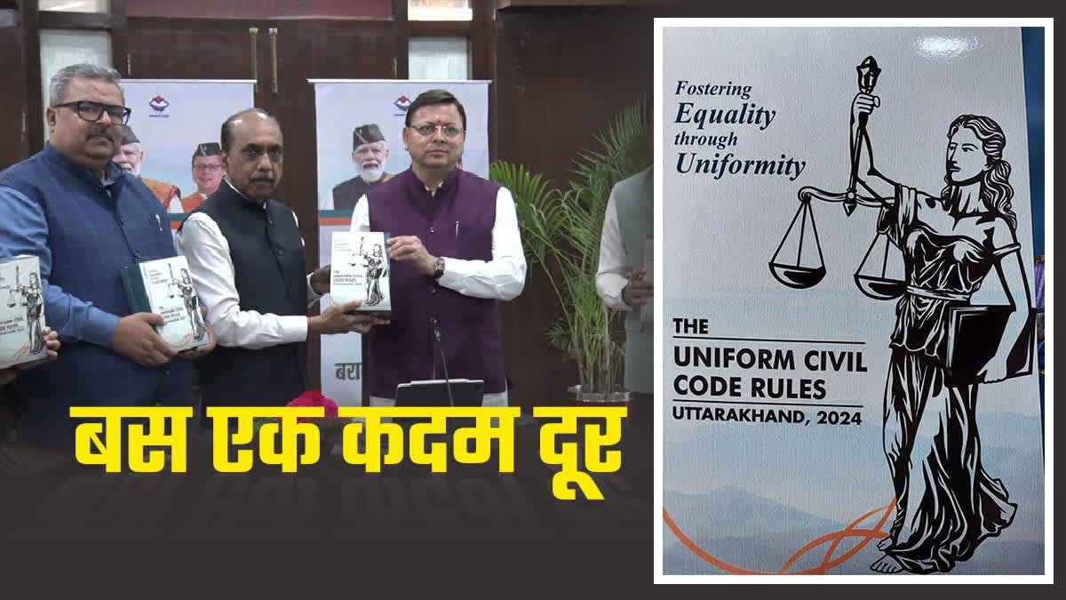 सरकार का छठवां कदम: यूसीसी की नियमावली तैयार करने के लिए गठित रूल्स मेकिंग एंड इंप्लीमेंटेशन कमेटी ने यूसीसी नियमावली का ड्राफ्ट तैयार किया. 18 अक्टूबर 2024 को यूसीसी रूल्स ड्राफ्ट सीएम धामी को सौंप दिया. यूसीसी लागू करने के लिए न सिर्फ यूसीसी नियमावली तैयार हो गई है, बल्कि यूसीसी पोर्टल और यूसीसी मोबाइल एप भी बनकर तैयार हो चुके हैं.