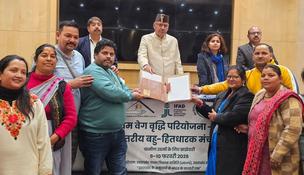 देहरादून : उत्तराखंड ग्राम्य विकास समिति (रीप) के अंतर्गत रूरल एंटरप्राइज एक्सीलरेशन प्रोजेक्ट (ग्रामोत्थान) द्वारा 9 एवं 10 फरवरी को देहरादून के एक निजी होटल में आयोजित दो दिवसीय राज्य स्तरीय मल्टी-स्टेकहोल्डर प्लेटफ़ॉर्म कार्यक्रम में ग्राम्य विकास मंत्री गणेश जोशी ने बतौर मुख्य अतिथि प्रतिभाग किया। कार्यक्रम के दौरान ग्राम्य विकास मंत्री गणेश जोशी ने प्रदेश के विभिन्न जनपदों से आए उत्तराखंड के विशेष एवं पारंपरिक उत्पादों की प्रदर्शनी का अवलोकन किया। और उत्कृष्ट कार्य करने वाले क्लस्टर लेवल फेडरेशन समूहों को प्रमाण पत्र एवं स्मृति चिन्ह प्रदान कर सम्मानित किया।